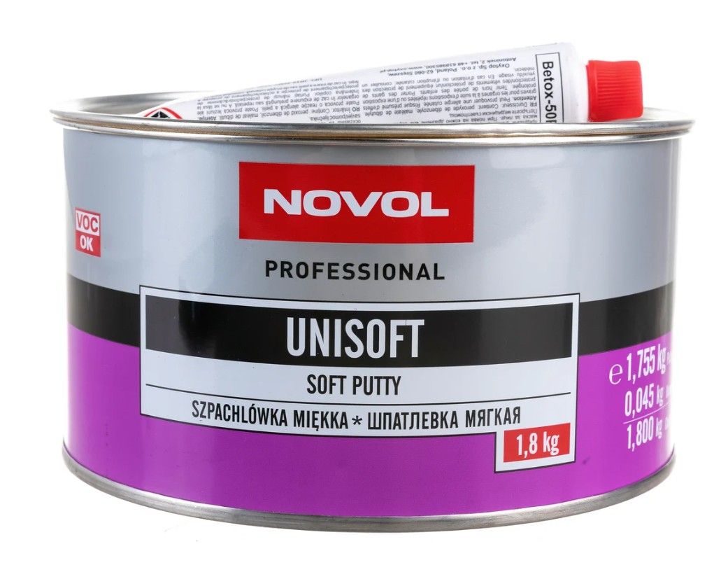 Шпатлевка Novol UNISOFT мягкая 1 кг - наполняющая шпатлевка широкого применения. Предназначена для нанесения толстым слоем. Идеально выравнивает очень глубокие повреждения. Мягкая, может обрабатываться как вручную, так и механическим способом. Обладает очень хорошей адгезией к разным видам оснований, в том числе и к оцинкованной стали. Высокая эластичность сводит к минимуму риск возникновения трещин даже на больших площадях поверхности. Быстрое затвердевание сокращает время ремонта.
