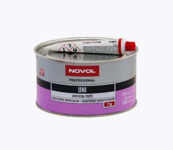 В универсальной шпатлевке Novol UNI Universal Putty сочетаются свойства наполняющих шпатлёвок (хорошая адгезия к разным видам оснований, заполнение больших неровностей, лёгкое нанесение и обработка крупнозернистой бумагой) и свойства отделочных шпатлёвок (хорошее нанесение тон-кими слоями и заполнение небольших неровностей и царапин, обработка мелкозернистыми бумагами). После нанесения оставляет очень гладкую поверхность, уменьшая необходимость шлифовки.