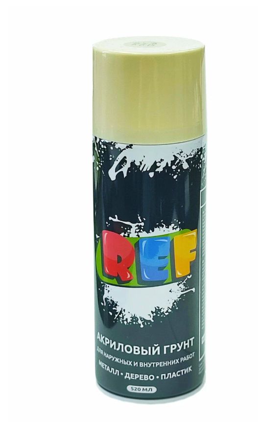 Высококачественный быстросохнущий аэрозольный акриловый грунт REF для грунтовки металлических, стеклянных, пластиковых и других поверхностей. Применяется для наружных и внутренних работ, в строительстве, авторемонте, декорировании интерьеров, ремонте и быту. Обладает высокой адгезией, атмосферостойкостью и хорошей укрывистостью. Продукт наносится с расстояния 25-30 см в 2-3 слоя с промежуточной сушкой 10-15 минут при температуре +20 °С. Полное высыхание окрашенной поверхности достигается через 60 минут. Для достижения наилучших результатов грунт следует наносить при температуре окружающей среды не ниже +10 °С.