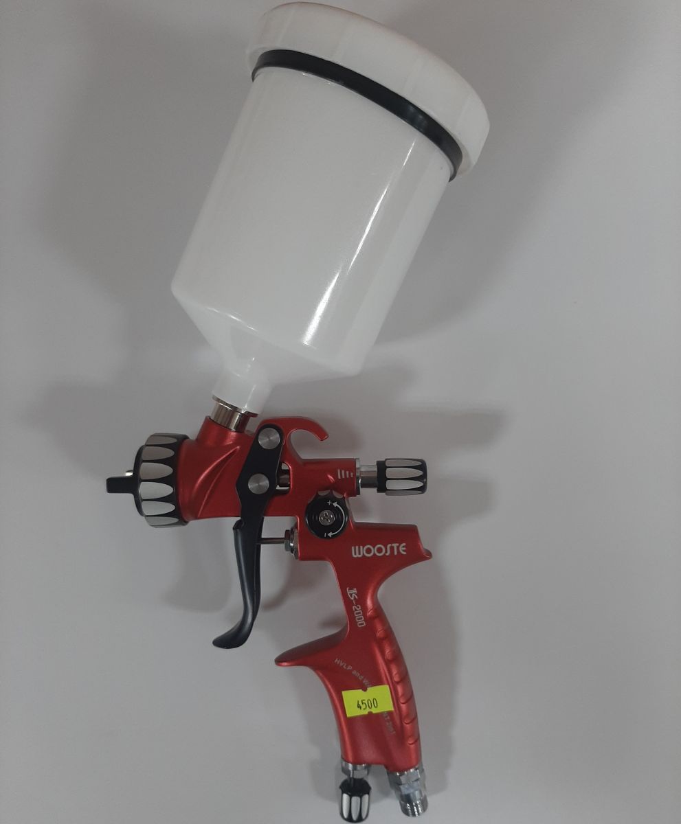 Читать все статьиWOOSTE Краскопульт TS2000 HVLP 1,3мм, красный, центральный бачек 600мл