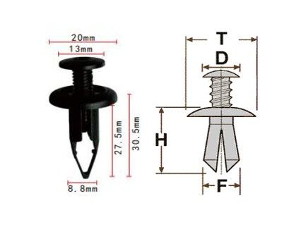 Читать все статьиКлипса T-0005 (KJ-001) автомобильная с резьбовым штырьком, 25шт.