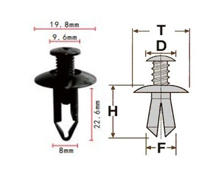 Читать все статьиКлипса T-0009 автомобильная с резьбовым штырьком, 25шт.