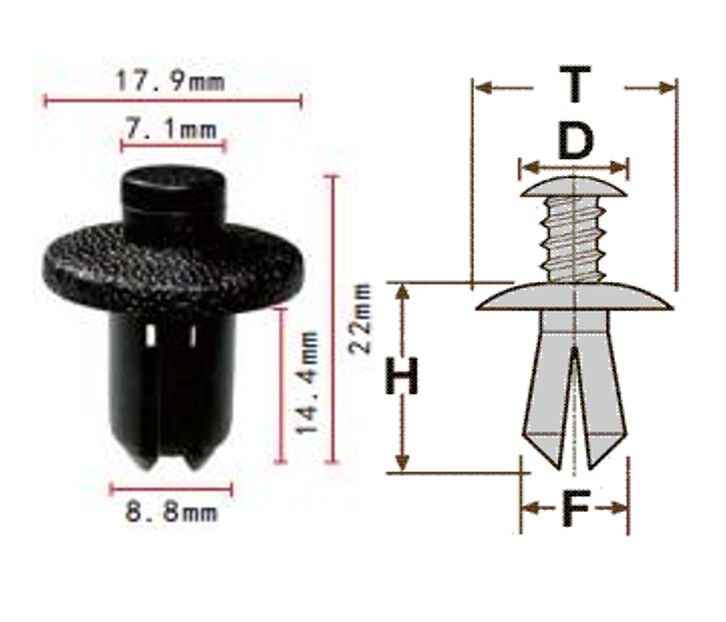 Читать все статьиКлипса T-1045 (KJ-355) автомобильная с нажимным штырьком, 25шт.