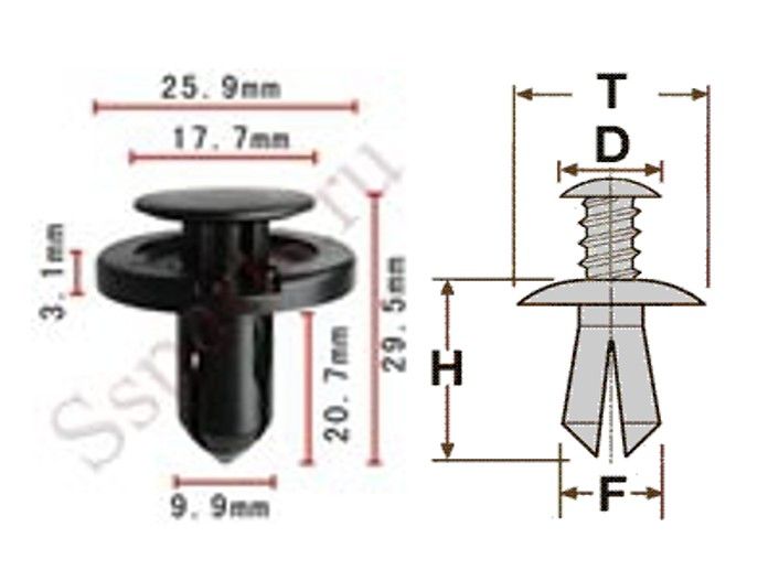 Читать все статьиКлипса T-1059 автомобильная с нажимным штырьком, 25шт.