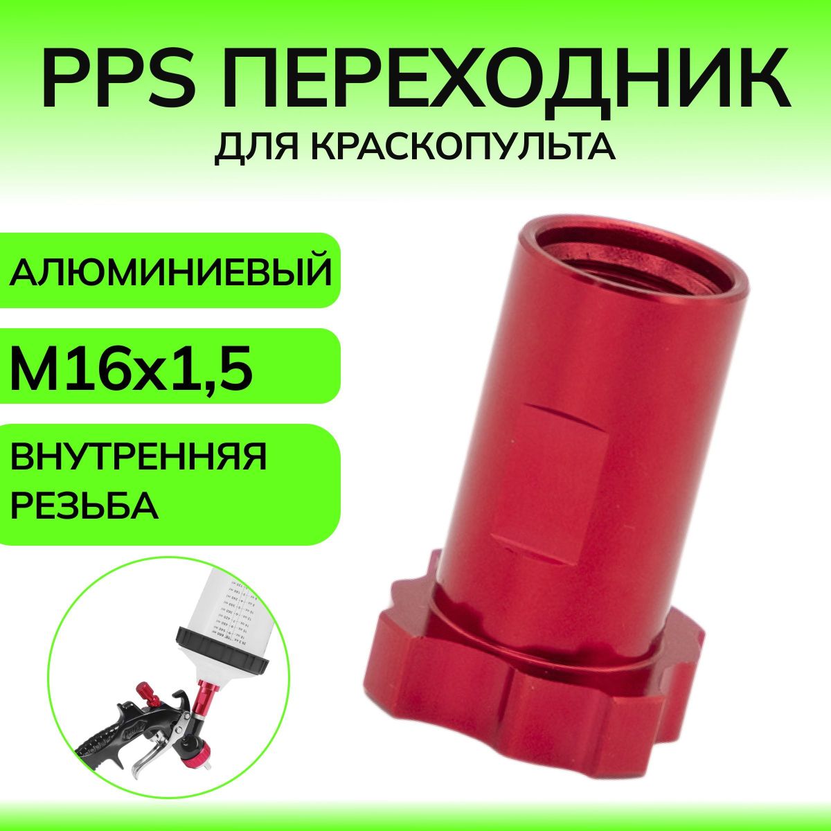 Алюминивый переходник для PPS, наружняя резьба M16x1,5.